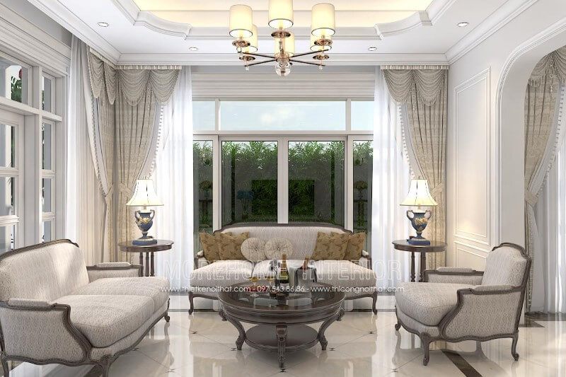 Việc thi công phòng khách của nhà phố, biệt thự với nội thất mang phong cách tân cổ điển sang trọng và cao quyền quý thẩm mỹ sẽ làm nên một không gian sống đầy quyền lực.