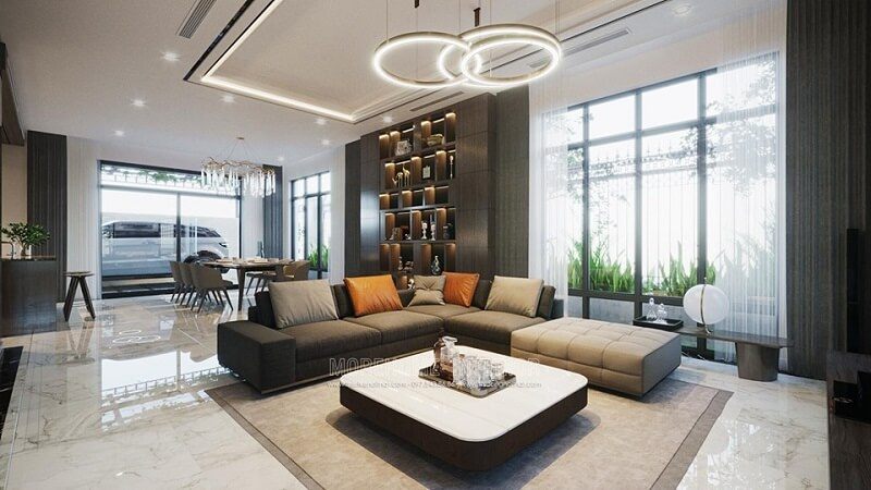 Trang trí nội thất phòng khách đẹp với đồ nội thất hiện đại cho biệt thự, nhà phố.