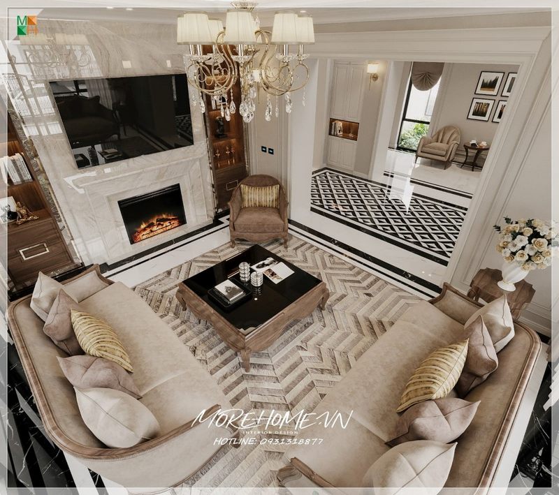 Thiết kế nội thất phòng khách biệt thự tân cổ điển sang trọng, đẳng cấp
