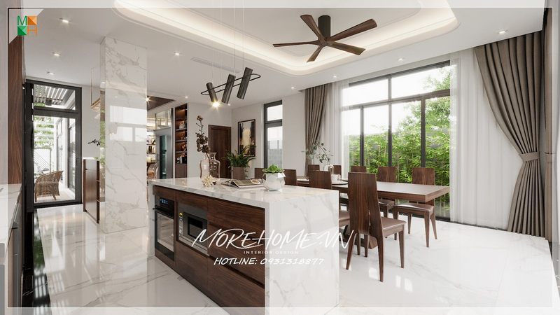 . Việc thiết kế một bàn đảo tiện lợi trong không gian bếp ăn của các biệt thự, nhà phố hiện đại là một lựa chọn được nhiều chủ nhà yêu thích.