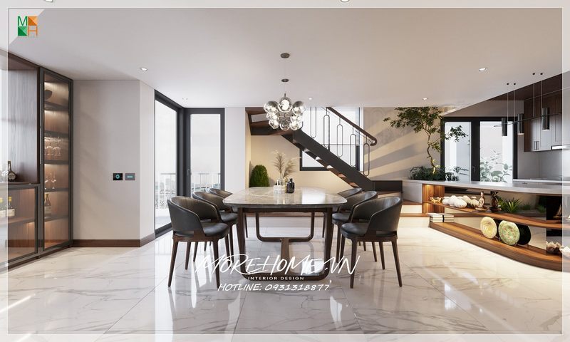 Ấn tượng sự gần gũi bình an trong không gian phòng bếp - phòng ăn của biệt thự, nhà phố nhờ cách sắp xếp tủ bếp, bàn ăn thông minh, khoa học