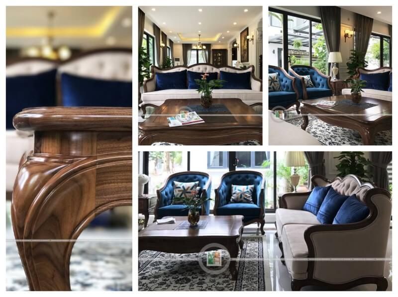 Việc thi công nội thất phòng khách gỗ óc chó sang trọng cho biệt thự Ecopark Hưng Yên với mẫu bàn trà gỗ óc chó tự nhiên nhập khẩu tinh tế đã được thực hiện.