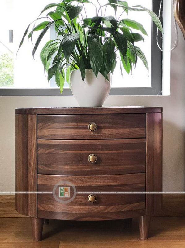 Tại công trình thi công đồ nội thất gỗ óc chó biệt thự Hưng Yên, có hình ảnh thực tế của một táp đầu giường gỗ óc chó.